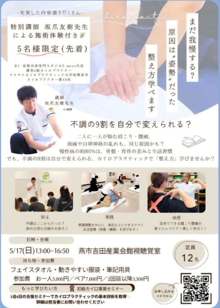 なんと、今回は特別講師による無料の施術体験付きです🤗